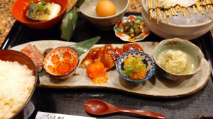 ご飯は白飯ではなく、土鍋で炊いた鯛めしです。量は普通のお店の大盛ぐらい盛られています。なお、50円で中盛、100円で大盛のおかわりが可能です。中盛のおかわりも普通のお店の大盛くらいあるので、良心的をこえて値付けを間違えてます(笑)。鯛めしについては意見が分かれるところがあると思います。小生が思うに、この鯛めしは御膳のバランスを崩さないようにあえて強い味付けにしていません。そのため、鯛めしとしては味が薄いなど不満を持たれる方がいらっしゃるかもしれません。この鯛めしは贅沢におかずとともにかきこむことを前提にしています。また、提供の際に鯛めしを半分の残しておいて、生卵をかけてしょうゆをかけずに食べるようにすすめられます。鯛めしに生卵は初めての経験です。鯛めしのほんのりとした塩味とうまみが生卵と混ざることでお互いに味を引き出しあいます。